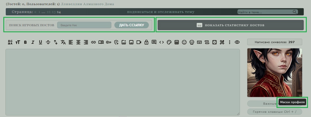 2) ПОСТЫ оформляются согласно правилам русского языка. Птица-тройка (речь жирным, мысли курсивом, чужая речь подчеркнутым) необязательна. В игровых постах допустимо использование изображений, анимаций, ссылок на музыку и видео. Можно выбрать любой стиль написания, но помните, что игра не ведется в одиночку, соигроки должны понимать, что вы имеете в виду.